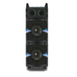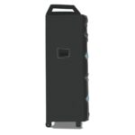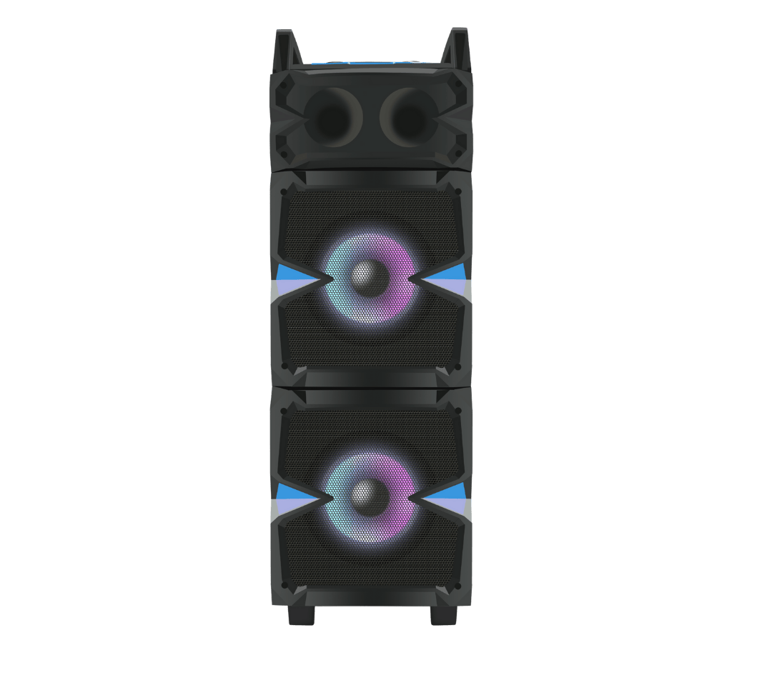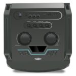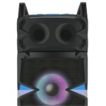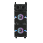 This one is driven by a dual 10 inch powerful subwoofers that makes for booming audio. The LED projections make for fantastic visuals and a power-packed 80 Watt sound is something that needs to be experienced. Great battery backup, an in-built karaoke mode with 2 microphones, and overall a great, handy, portable beast that instantly commands attention.